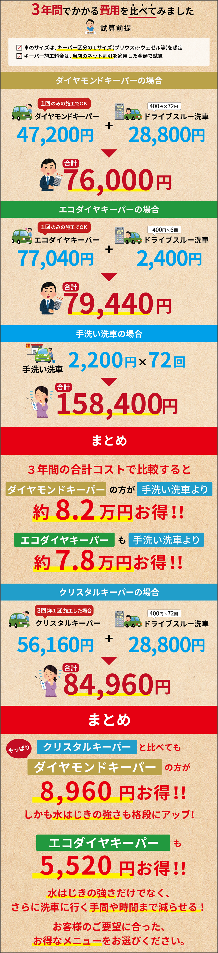 カーディーラーや車販売店のコーティング料金より断然お得!