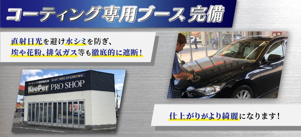 当店は専用の防塵コーティングブースを完備しており、細かい埃や日光を遮断した環境下で作業を実施いたします!